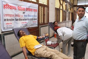 फरीदाबाद, 6 अगस्त : हरियाणा मीडिया वेलफेयर क्लब द्वारा नीलम बाटा रोड स्थित अग्रवाल वेश्य धर्मशाला में रक्तदान शिविर एवं स्वास्थ्य जांच केन्द्र का आयोजन किया गया। क्लब के जिला प्रधान किशोर शर्मा, जिला उपप्रधान विनोद कुमार एवं रविन्द्र विधुड़ी के जन्मदिवस के उपलक्ष्य में इस कार्यक्रम का आयोजन किया गया।