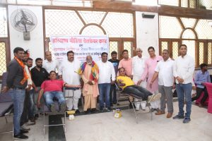 रक्तदान शिविर का आयोजन समाजसेवी विमल खंडेलवाल के नेतृत्व में जय सेवा फाउंडेशन व डिवाइन चैरिटेबल ब्लड बैंक के सौजन्य से किया गया। शिविर में 48 यूनिट रक्त एकत्रित किया गया, जिसमें पुलिस प्रशासन के आला अधिकारियों ने भी बढ़-चढक़र हिस्सा लिया। कार्यक्रम में मुख्य अतिथि के रूप में पहुंचे पुलिस उपायुक्त एनआईटी नरेन्द्र कादियान ने क्लब के पदाधिकारियों का हौसला बढ़ाया और कहा कि पत्रकारों की संस्था द्वारा उठाया गया इस प्रकार का कदम सराहनीय है और इसकी जितनी तारीफ की जाए कम है। उन्होंने इस शिविर में रक्तदान करने वाले पुलिस के इंसपेक्टर, सब इंस्पेक्टर एवं सिपाहियों की हौसलाफजाई की और कहा कि ऐसे पुलिस के जवानों को सम्मानित किया जाएगा, जिन्होंने आज यहां रक्तदान किया है।
