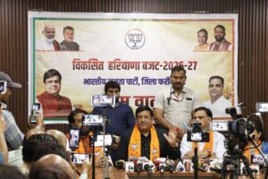 फरीदाबाद: कैबिनेट मंत्री विपुल गोयल ने मंगलवा को बजट पर प्रेस वार्ता करते हुए कहा कि हरियाणा सरकार द्वारा प्रस्तुत वर्ष 2026-27 का बजट केवल आय-व्यय का विवरण नहीं है बल्कि यह जनता के विश्वास और भविष्य की मजबूत नींव का दस्तावेज है। कैबिनेट मंत्री श्री विपुल गोयल ने कहा कि यह बजट हर वर्ग की अपेक्षाओं को ध्यान में रखकर तैयार किया गया है और इसमें प्रदेशवासियों के हजारों सुझाव शामिल किए गए हैं।