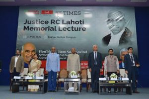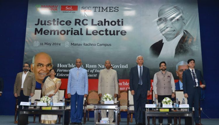 फरीदाबाद: (नितिन कस्तूरिया)  11 मई, मानव रचना विश्वविद्यालय (एमआरयू) के स्कूल ऑफ लॉ की ओर से शनिवार को प्रतिष्ठित जस्टिस आरसी लाहोटी मेमोरियल लेक्चर सीरीज़ का आयोजन किया गया। माननीय जस्टिस आरसी लाहोटी की समृद्ध कानूनी विरासत की स्मृति में आयोजित हुए इस कार्यक्रम में बतौर मुख्य अतिथि भारत के पूर्व राष्ट्रपति राम नाथ कोविन्द ने शोभा बढ़ाई, जबकि बतौर सम्मानित अतिथि भारत के पूर्व मुख्य न्यायाधीश जस्टिस यूयू ललित शामिल हुए।
