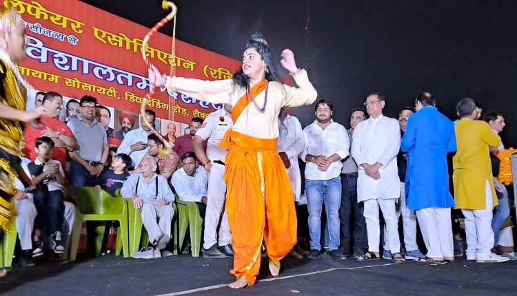 विधायक राजेश नगर ने सेक्टर-37 में लगाए गए रावण के विशाल पुतले को आग लगाई